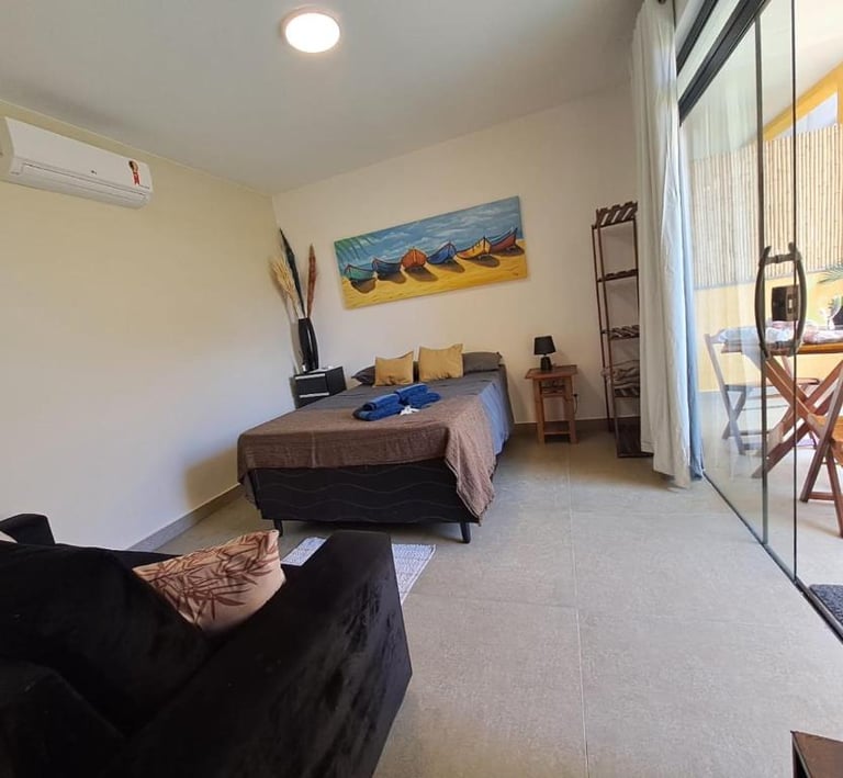 A Suite Maré combina conforto e tranquilidade em um ambiente acolhedor, com frigobar, Wi-Fi, banheiro privativo e praticidade para sua estadia.